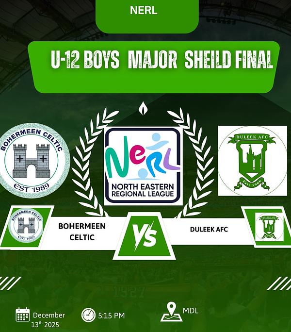 Our third and last shield final of the week will see our u12 Boys take on Duleek in the MDL on Saturday evening at 5:15. This will be our last game of the 2025 season and we would love to see a big crowd support the lads. Wishing all the lads and the coaches the very best of luck.⚪🟢⚪🟢⚪🟢