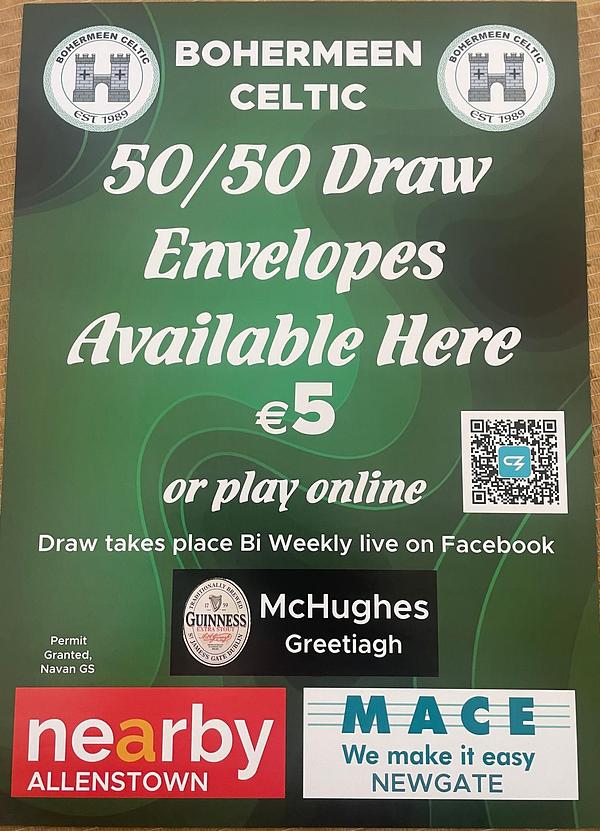 Our first draw of 2026 take place on New Years Day, you can play by buying your ticket in any of our local shops, McHugh's of Greetiagh, Nearby Allenstown or Newgate Mace, or you can play online through ClubZap. Remember, each draw has a guaranteed winner and so far over €4000 has been won.