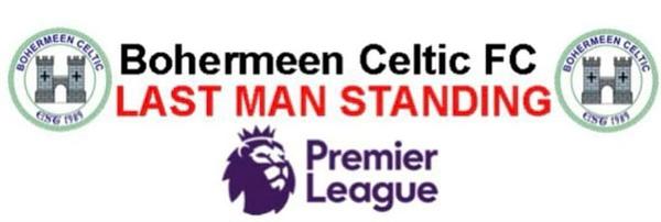*Rules below:* - Entry Fee - €15 - Last Man Standing Winner - €300 - If your team DRAWS or LOSES you are out. - Pick 1 team weekly, once you pick a team, this team can not be picked again for the competition. - If there is no entry in by the closing time you will receive the bottom of the league team (even if you have picked them before). - Fixtures on Friday, Saturday, Sunday and Monday will be the games to choose from. No midweek games will be included unless it is a full round of fixtures. - If knocked out in Week 1, you can buy back in for €10.
