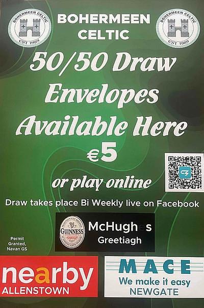 Our next 50/50 draw takes place this coming Thursday with a guaranteed WINNER, so get your entries in through ClubZap or any of our local shops, Newgate Mace, McHugh's of Greetiagh or Nearby Allenstown.